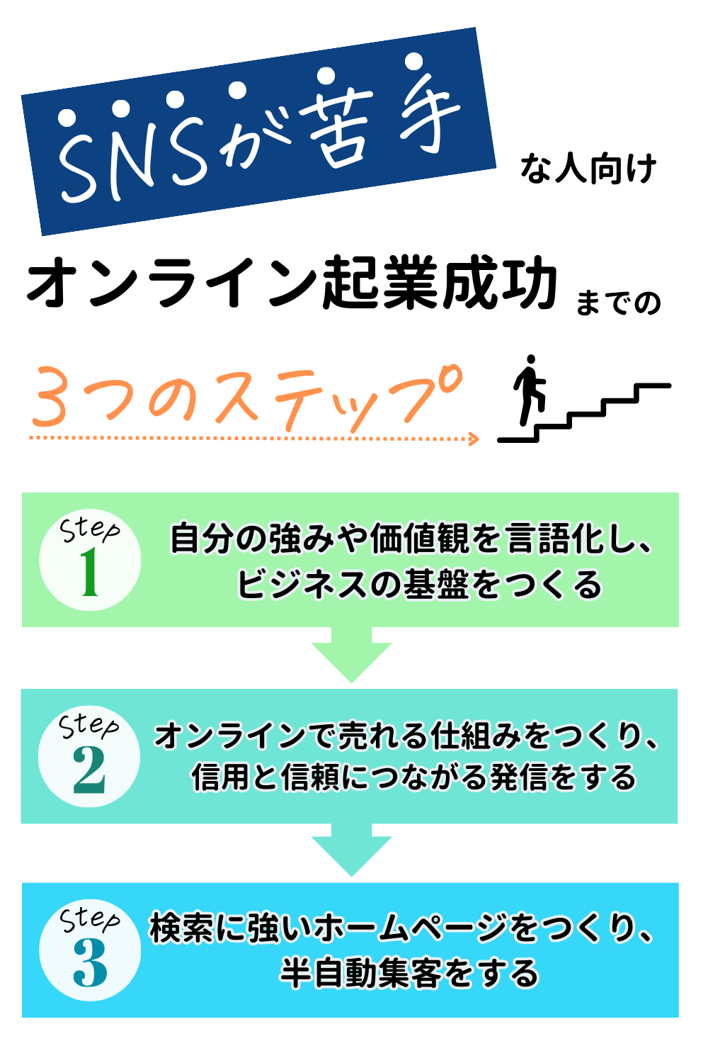 この3つのステップを実践することで、SNSで頑張ってキラキラした自分を演じなくても、信用と信頼を重ねることでお客様から選ばれるようになるでしょう。